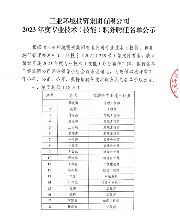2023年度專(zhuān)業(yè)技術(shù)人員聘任公示