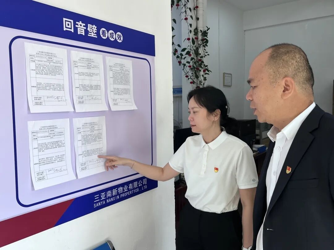 ▲物業(yè)黨員查看回音壁公布情況