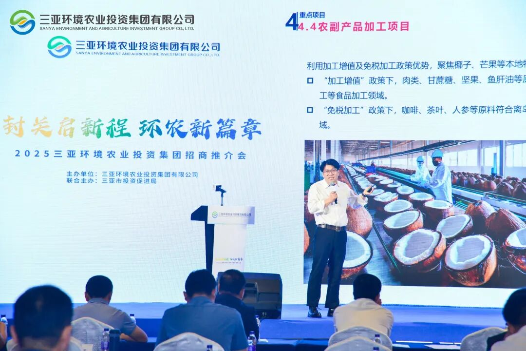 12月23日,由三亞環(huán)農(nóng)集團(tuán)、三亞市投資促進(jìn)局聯(lián)合主辦的“封關(guān)啟新程·環(huán)農(nóng)新篇章”2025招商推介會(huì)在三亞灣紅樹林國際會(huì)展中心舉行。推介會(huì)圍繞環(huán)農(nóng)集團(tuán)六大業(yè)務(wù)板塊,集中推介了11個(gè)招商項(xiàng)目,投資總規(guī)模達(dá)28.44億元。來自各相關(guān)部門和60多家島內(nèi)外企業(yè)、合作伙伴、金融機(jī)構(gòu)的代表同三亞環(huán)農(nóng)集團(tuán)共話農(nóng)商與環(huán)境板塊新成果、共探自貿(mào)港新政策、共尋合作新機(jī)遇。